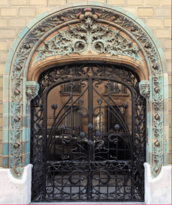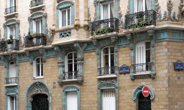 L’art Nouveau, dans son aspect le plus flamboyant n’a finalement duré à Paris que quelques années, de 1898 à 1905…Dès 1910 le style se limite souvent à un seul décor d’éléments sculptés réalisés en pierre comme le linteau de la porte d’entrée et (ou) des fenêtres ; on constate la disparition de la céramique architecturale au décor foisonnant.