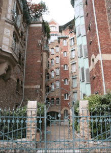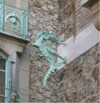 Mais c’est bien le Castel Béranger qui apparait comme la première manifestation de ce qu’on appelle Art Nouveau à Paris. C’est en tout cas la plus flamboyante des multiples tentatives de trouver un art moderne au tournant du siècle. Avec cet immeuble manifeste, Hector Guimard est sans doute le plus célèbre des protagonistes de ce nouveau style, largement basé sur l’observation de la nature, d’un point de vue structurel et décoratif. Partout où cela est possible la ligne droite est bannie. La ligne souple, l’ondulation , l’arabesque caractérisent l’Art Nouveau. La flore et la faune sont sources d’inspiration et les couleurs délicates. Révolutionnaire et international mais très court dans le temps (le mouvement s’éteindra au début de la première guerre mondiale) le style Art Nouveau a eu aussi ses détracteurs. Le mouvement souffrit des critiques qui qualifièrent le style Art Nouveau de style « nouille » ou « os de mouton » ou « rastaquouère » (!) de la part d’une phalange d’écrivains traditionnalistes. Le Castel Béranger n’échappa pas aux violentes condamnations d’où son surnom de « Castel Dérangé » ou « de maison des diables ». Ce dernier qualitatif est dû au fait qu’il y a, du rez-de-chaussée à la toiture une folle ascension de figures grimaçantes, de groupes fantastiques où l’artiste voulut peut-être représenter des chimères mais où la population a surtout vu des démons et qui font se signer à vingt pas toutes les commères du quartier! L’immeuble de l’actuelle rue Jean de la Fontaine n’en demeure pas moins l’un des plus bel exemple à Paris du style Art Nouveau et fait parti des immeubles iconiques à connaître.