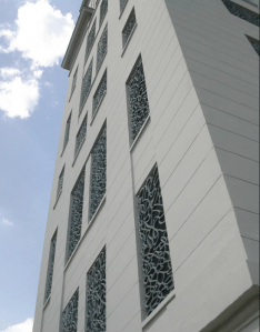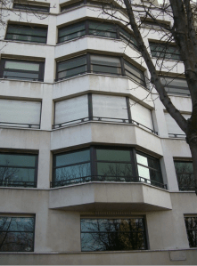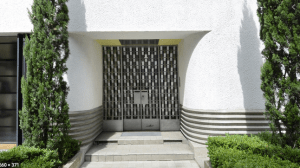 propre au style Art-Déco avec la ferronnerie de la porte d’entrée tandis que les fenêtres en bandeau, avec huisseries métalliques rappellent aussi celles des immeubles modernistes.