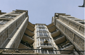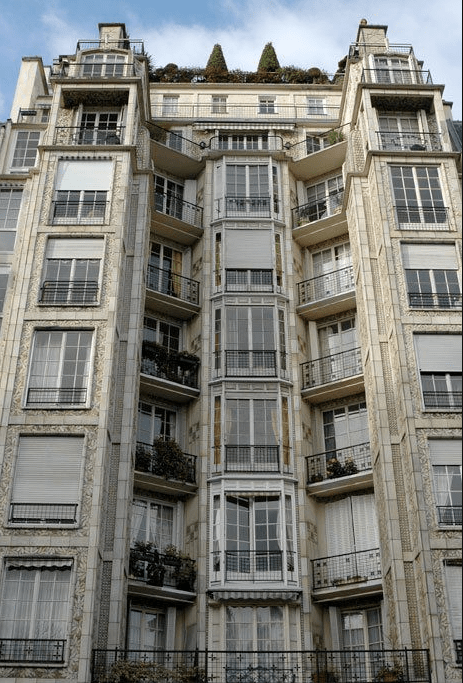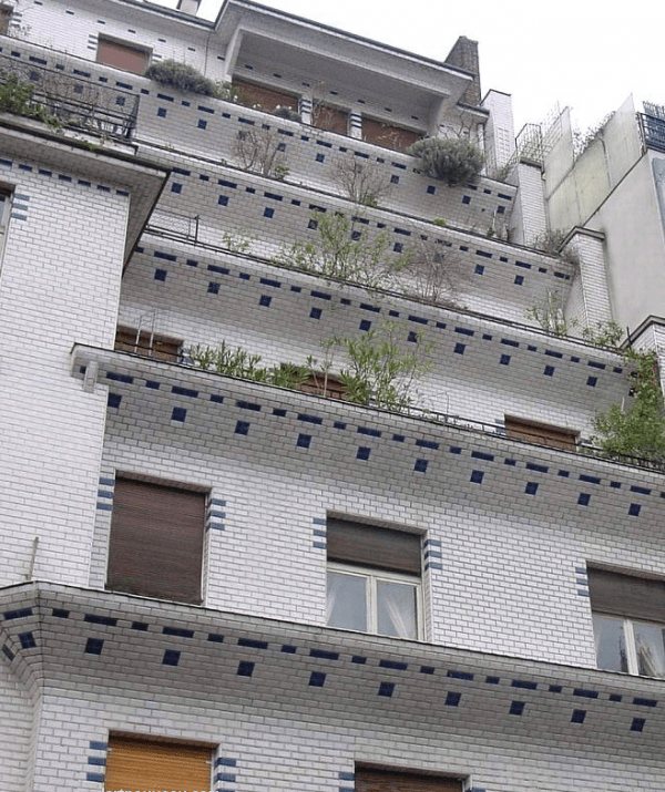 construction urbaine courante, une solution nouvelle utilisée par les sanatoriums; les étages sont en retrait les uns par rapport aux autres dégageant des terrasses destinées aux cures d’air et de soleil des malades. Le système de la construction en gradin est principalement conçu pour améliorer l’hygiène des classes laborieuses mais l’engouement de la bourgeoisie pour cette typologie amène Henri Sauvage dès 1910 à appliquer ce principe constructif à un programme de logements de luxe ici dans le 6 ème arrondissement.