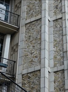 cessera de dire toute l’attention qu’il a porté à l’application de ces carreaux de grès en choisissant tel ou tel motif afin d’affirmer l’ossature. Il fait une distinction essentielle entre les parties porteuses et le remplissage. Cette distinction est signalée par le décor uni sur les parties porteuses et à motifs sur les parties de remplissage. Cette même ossature en béton armé va permettre à Auguste Perret d’élever un bâtiment à 33 mètres et 9 étages mais avec un seul appartement par niveau à cause de l’étroitesse du terrain. Les possibilités techniques du matériau vont permettre à l’architecte un dessin complexe de la façade concave permettant de développer 5 pièces principales en façade, largement éclairées par de grandes baies vitrées, alors qu’on n’aurait pu ne faire que 4 pièces avec une façade classique plate. Il fallait au maximum tirer partie de la vue magnifique.