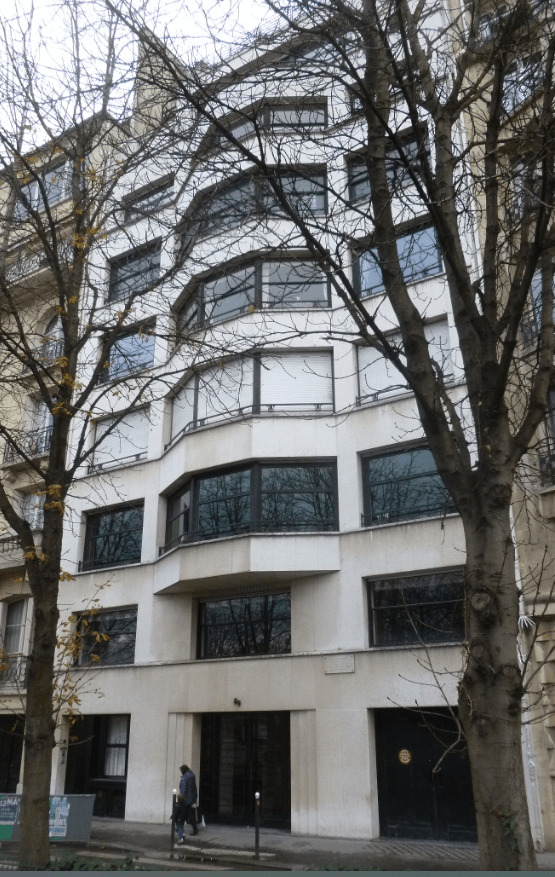 window traditionnel parisien. Le bow-window à trois pans de la façade sur rue sera repris par de nombreux architectes par la suite avec plus ou moins de bonheur. L’ossature du bâtiment en béton armé est masqué par la pierre d’Hauteville à l’aspect noble et classique. Très présent dans le débat architectural des années 30, Roux-Spitz défend le béton mais s’élève contre le nouveau formalisme qu’incarne selon lui l’architecture de Le Corbusier et de ses disciples. En cela il se rallie aux positions d’Auguste Perret, dont il ne suit cependant pas entièrement les théories. En effet, peu soucieux de donner au béton armé la noblesse des matériaux traditionnels, Roux-Spitz recourt le plus souvent au plaquage de pierres qu’il met en oeuvre avec un soin particulier. La façade se caractérise par l’absence d’ornement (ce qui la rapproche de l’esthétisme moderne) conjugué à un vocabulaire